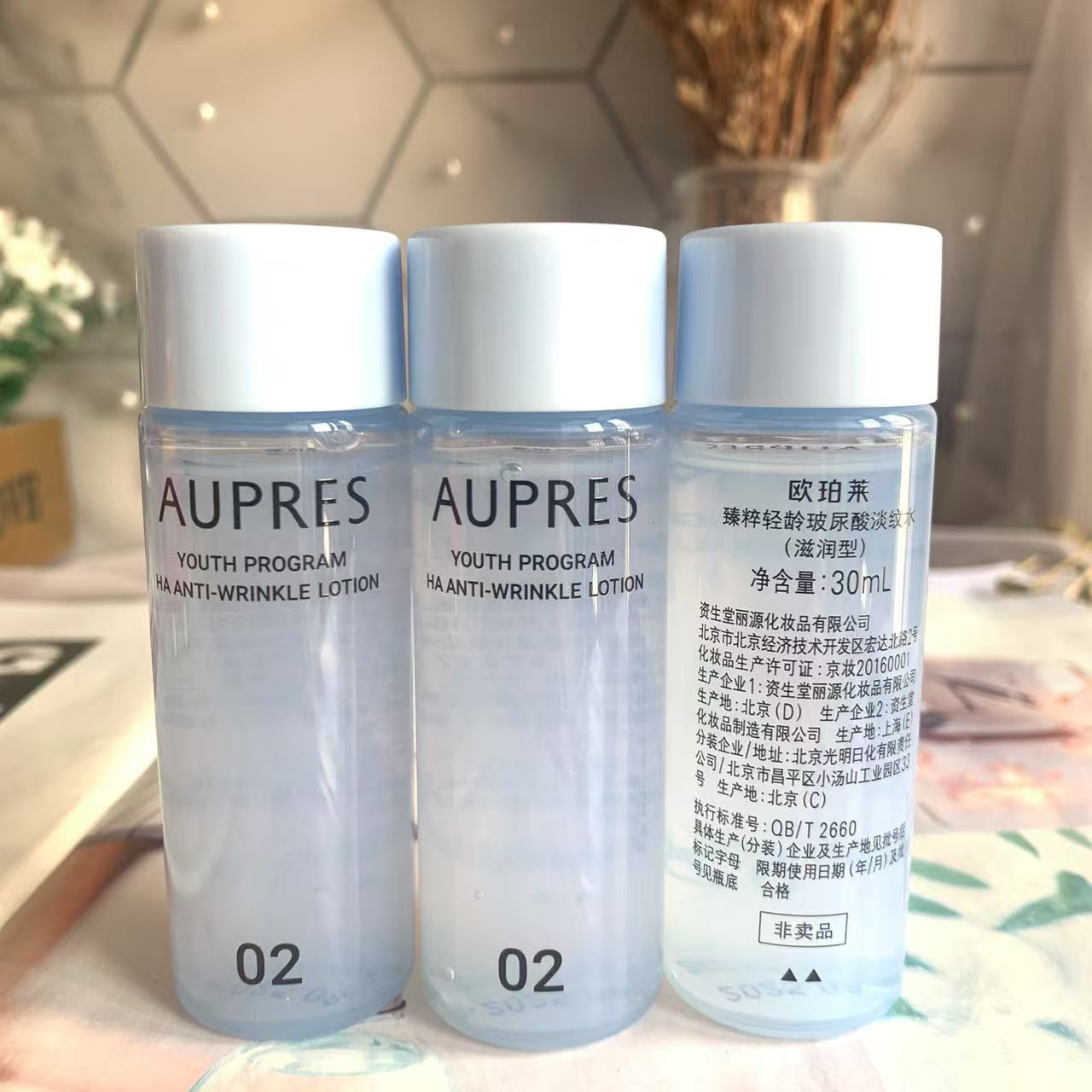 3瓶價!歐珀萊臻粹輕齡玻尿酸淡紋水30ml乳液20ml滋潤型補水保濕