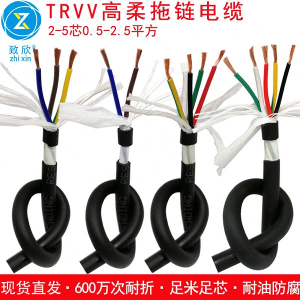 柔性拖鏈電纜TRVV2芯3芯4芯5芯6芯0.15-2.5平耐油耐寒坦克鏈線