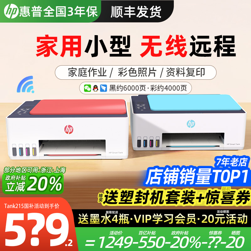 HP/惠普tank592彩色連供無線家用小型打印機噴墨倉式599連接手機學生照片復印掃描一體機596商務辦公政府補貼