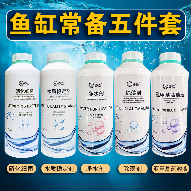 屈臣氏亦淼養魚五件套凈水劑除藻劑硝化活菌水質穩定劑亞甲基藍溶