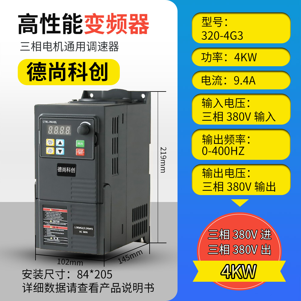 4KW 變頻器三相380V 單相220V 電機調速器風機水泵