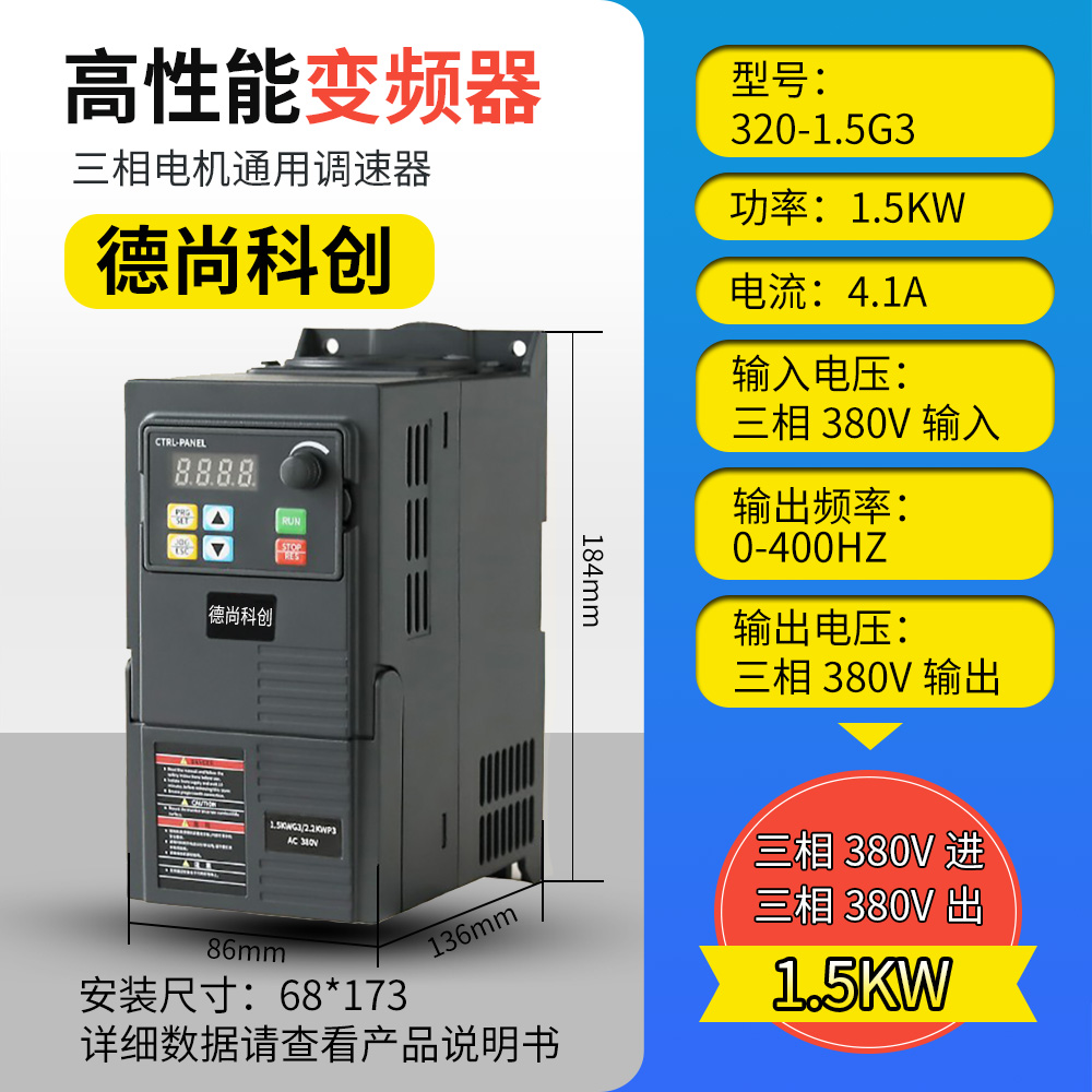 1.5KW 變頻器三相380V 單相220V 電機調速器風機水泵