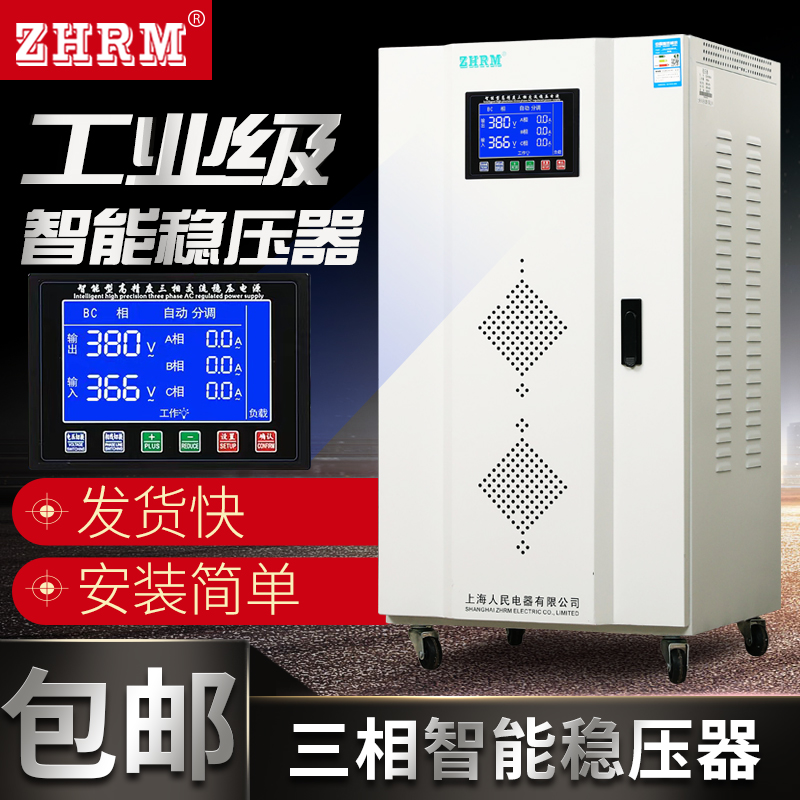 上海人民三相智能穩壓器60kw30KW100kva40/50/80/20/120k新款液晶