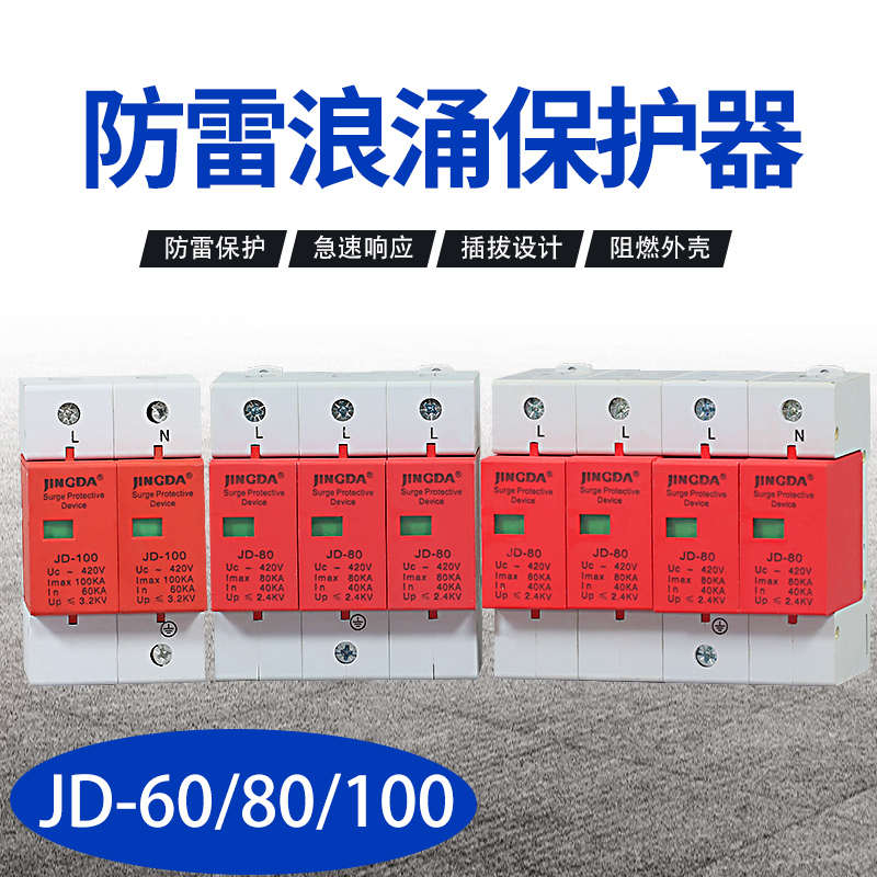 防雷浪涌保護器家用2P3P4P避雷器電涌60KA80KA100A三相電源380V