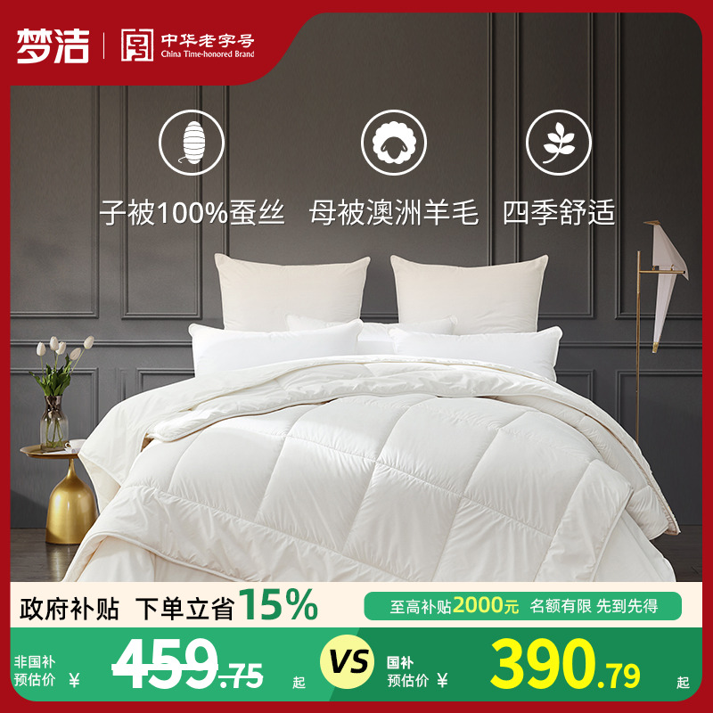富安娜蠶絲被子母二合一春秋被子澳洲羊毛被雙人保暖四季通用被芯
