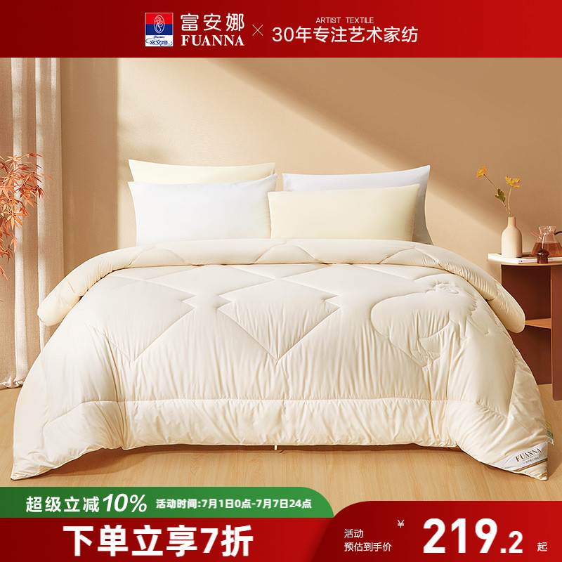 富安娜羊毛被澳洲羊毛大豆纖維七孔抑菌冬被單雙人四季被子被芯