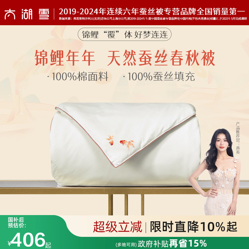 浪姐同款黃英 太湖雪100%蠶絲被子被芯夏涼被空調被四季錦鯉年年