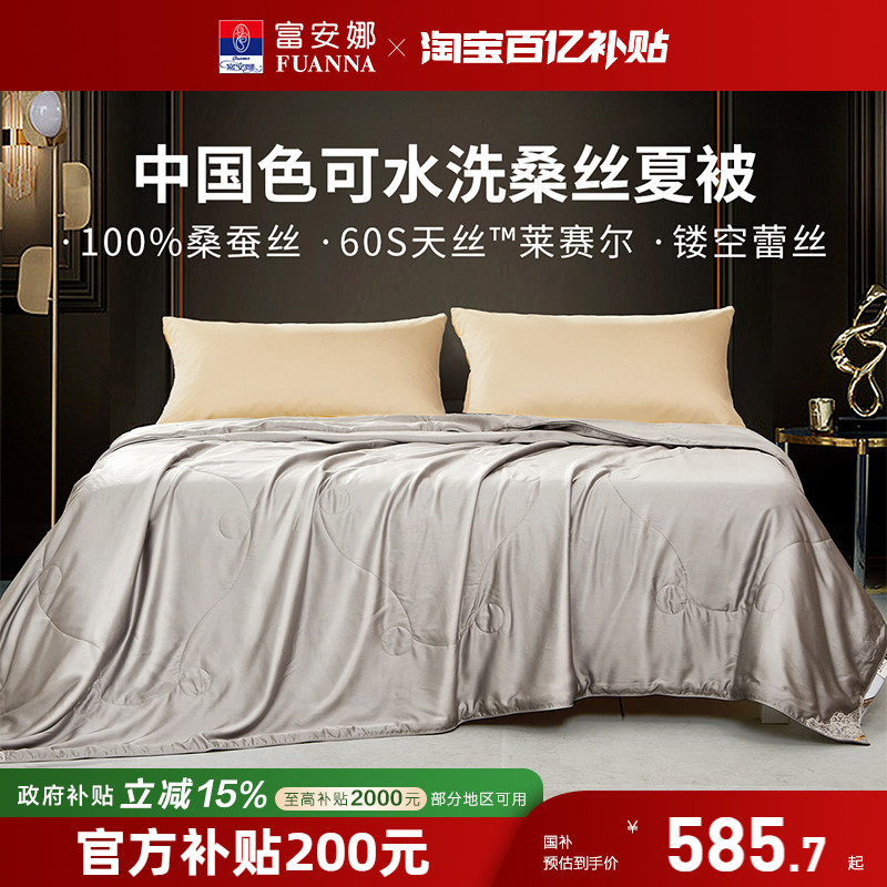 富安娜桑蠶絲被子 60S天絲萊賽爾可水洗空調被春秋被褥薄款夏涼被