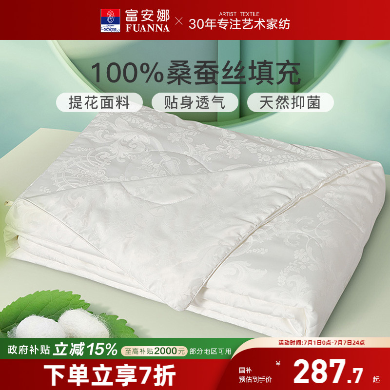 富安娜蠶絲被夏涼被萊賽爾春秋被芯空調被夏季單雙人薄款蠶絲被子