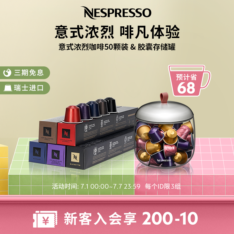 Nespresso奈斯派索膠囊咖啡意式濃烈50顆進口美式咖啡含儲存罐