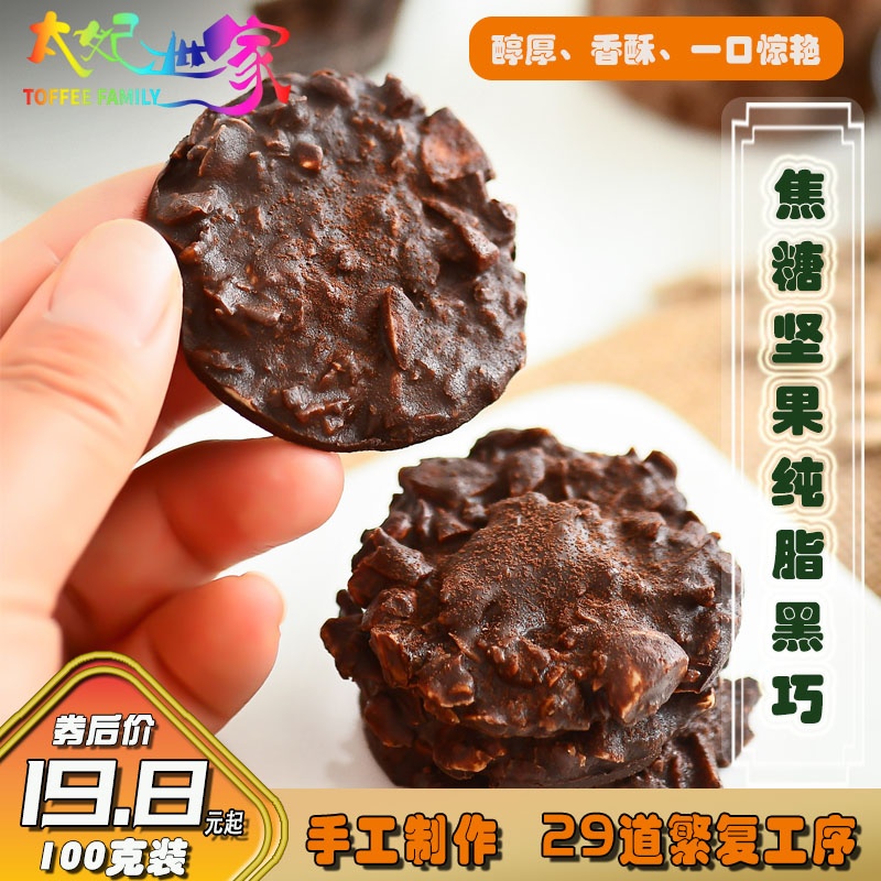 焦糖扁桃仁手工黑巧克力純可可脂杏仁甜品零食圣誕情人節伴手禮物