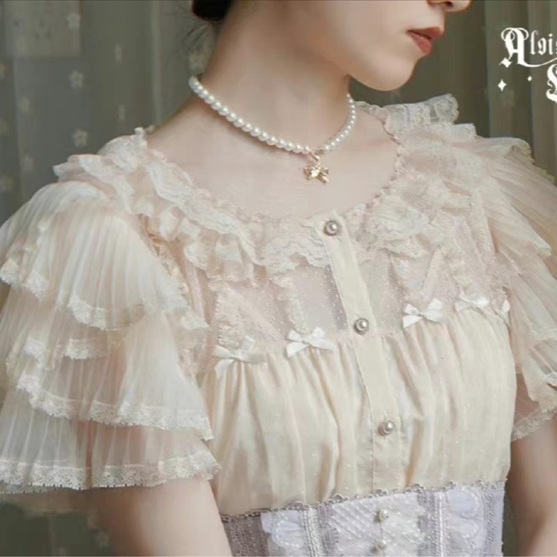 諦夢焚世【小野菊】Lolita洋裝提花棉夏季新款短袖內搭娃娃領襯衫