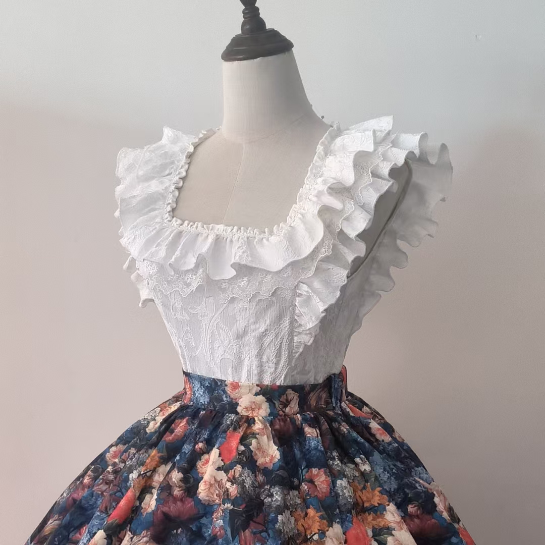小飛飛Lolita方領內搭飛袖上衣復古襯衫原創設計夏天