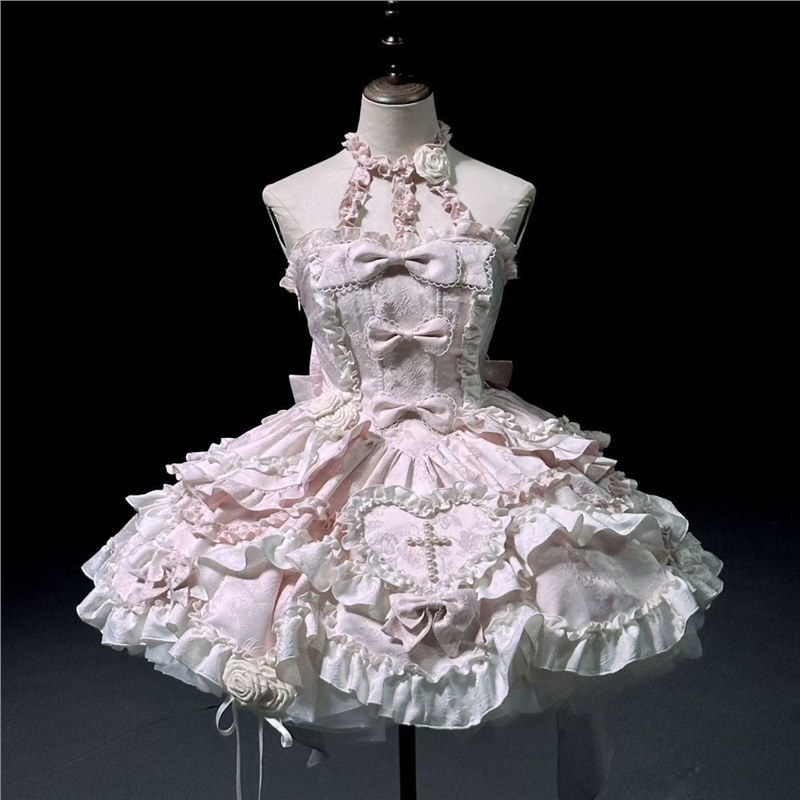桔梗house愛神之約原創lolita公主風特純欲風掛脖吊帶短裙蓬蓬裙