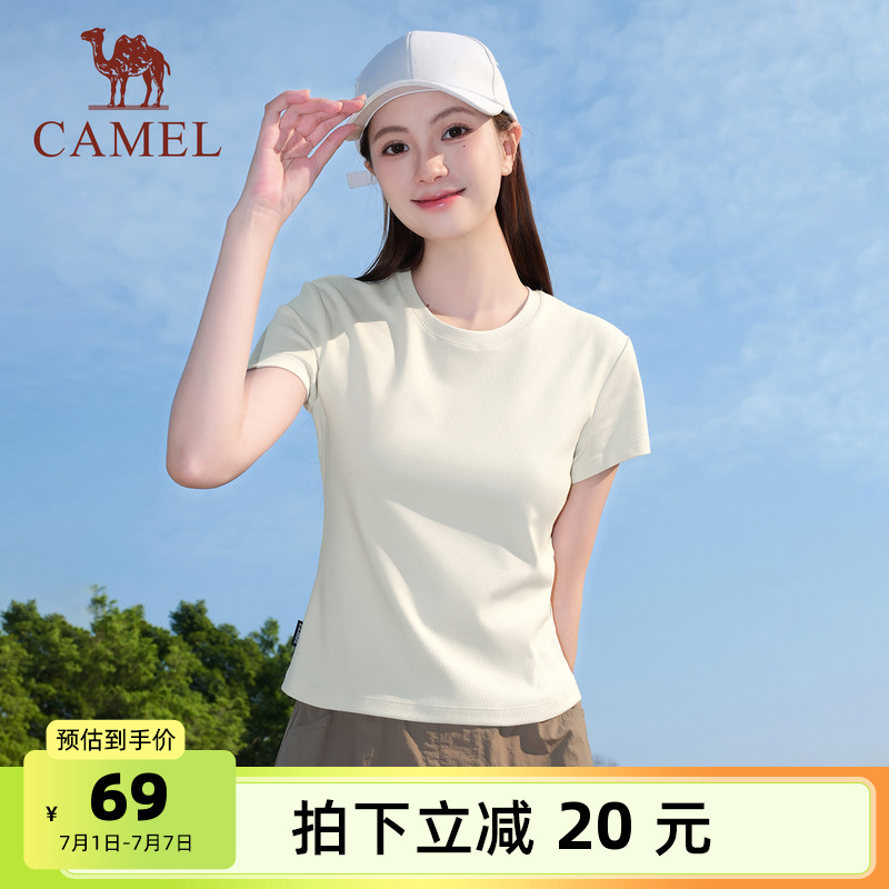 【夏日】駱駝瑜伽服圓領T恤女2025夏季透氣短袖休閑運動顯瘦上衣