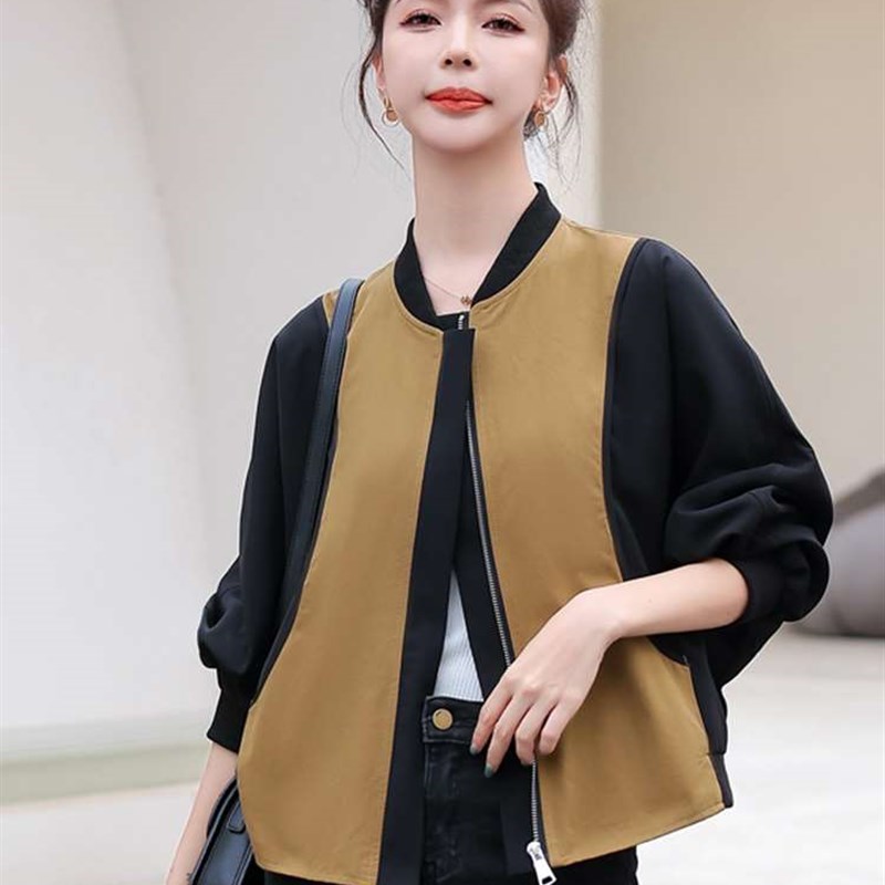 小個子時尚拼接撞色棒球服外套女2023秋冬新款百S搭休閑.夾克短上