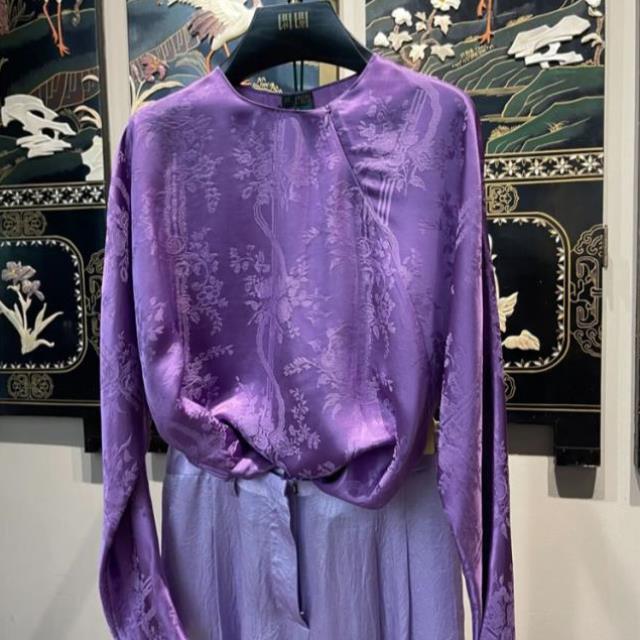 早秋新中式紫色真絲襯衫別致漂亮輕奢高定氣質女神范中國風套裝褲