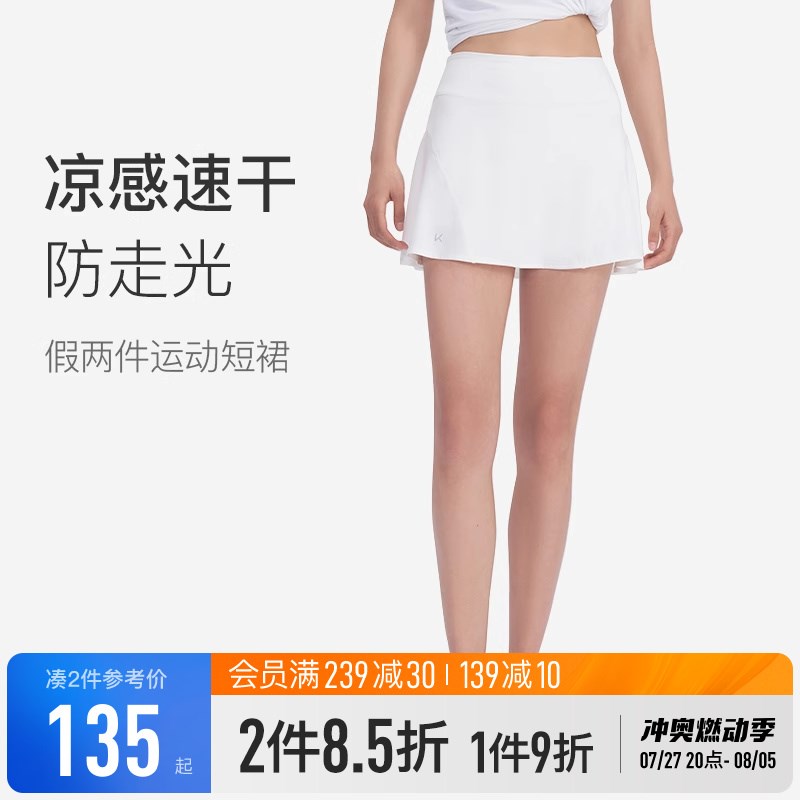 Keep運動短裙假兩件防走光瑜伽裙跑步網K球羽毛球百褶小白裙夏季