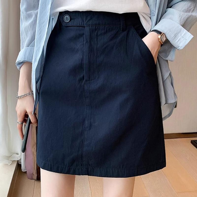 半身裙女夏新款簡約通勤工裝短裙氣質顯瘦包臀設計感紐扣a字熱裙