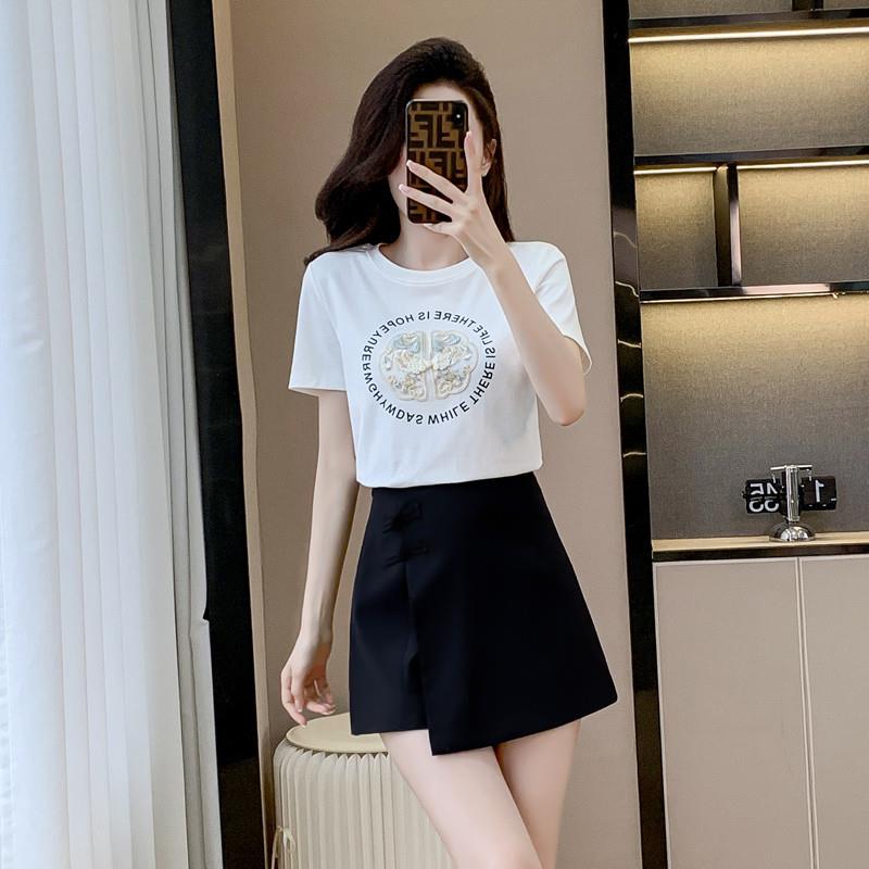 今年流行時尚套裝夏季洋氣減齡新中式短袖T恤+半身短裙褲兩件套女