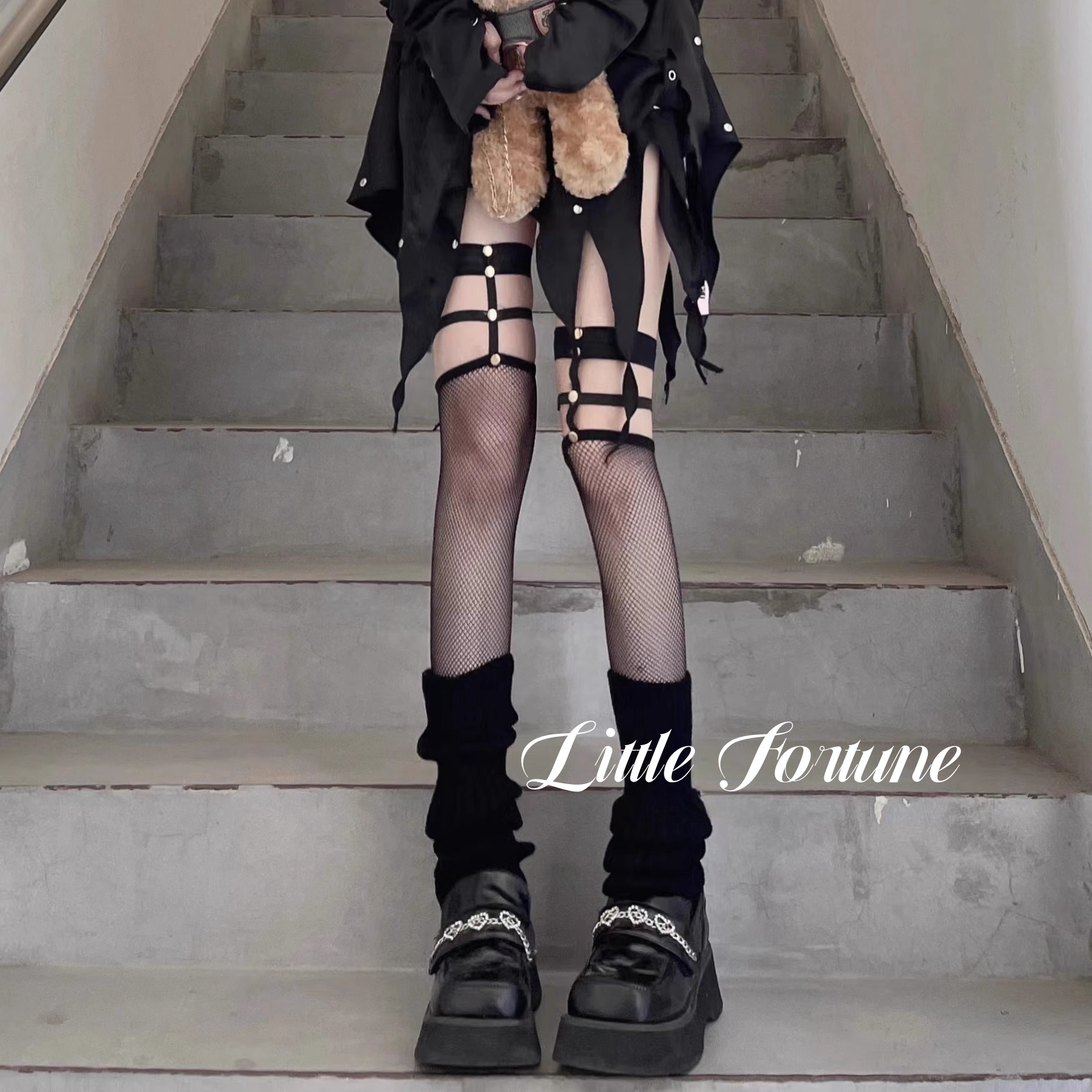 LittleFortune亞文化絲襪y2k綁帶朋克過膝漁網辣妹吊帶配堆堆襪套