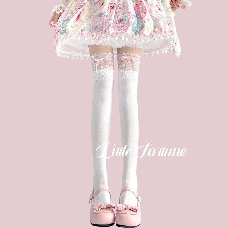 日系蕾絲花邊Lolita襪子女春夏蝴蝶結中筒襪純棉長筒大腿襪過膝襪