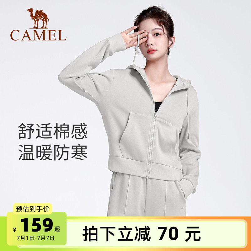 駱駝休閑運動服套裝春季外套女開衫連帽跑步上衣健身服瑜伽兩件套