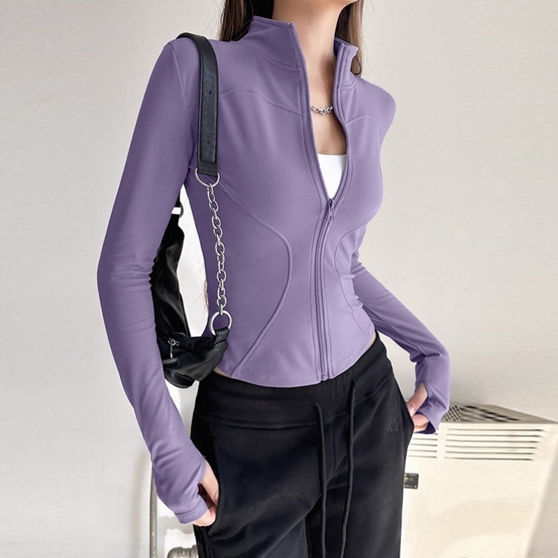 JIUOOJIU立領高彈運動外套經典磨毛親膚顯瘦戶外健身瑜伽服上衣