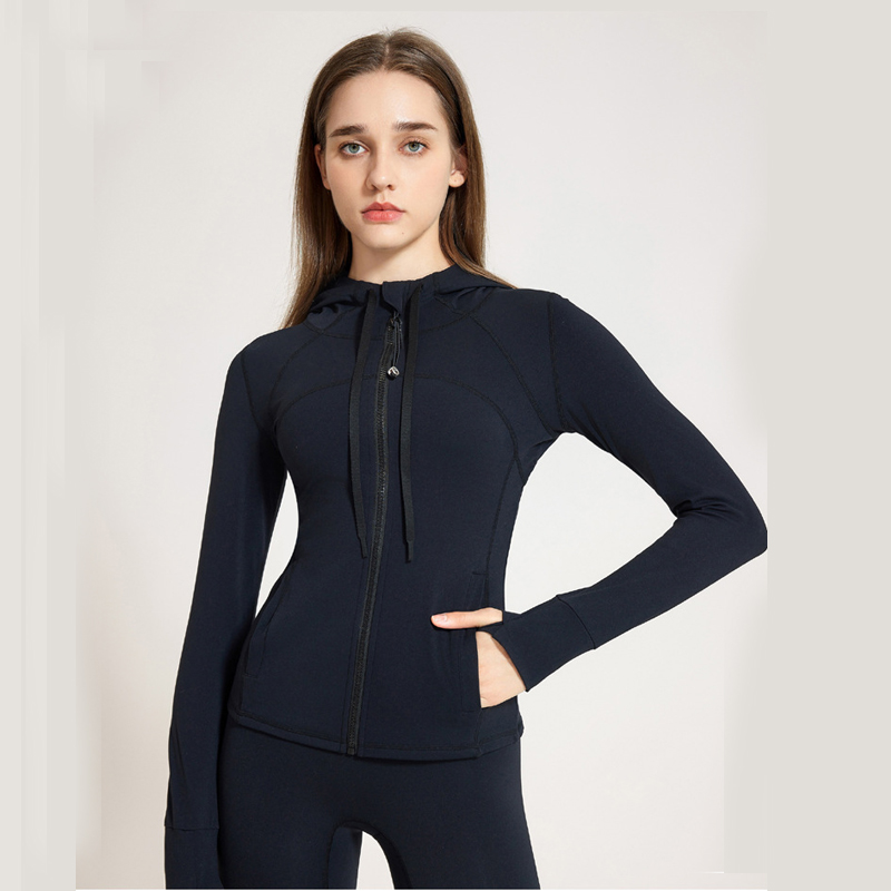 運動外套女連帽拉鏈開衫長袖修身速干跑步夾克健身上衣瑜伽服外套