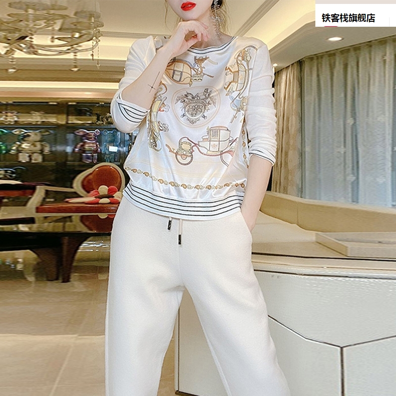 新品休閑減02袖高端時髦氣質2齡長Q3衛衣褲子兩件套