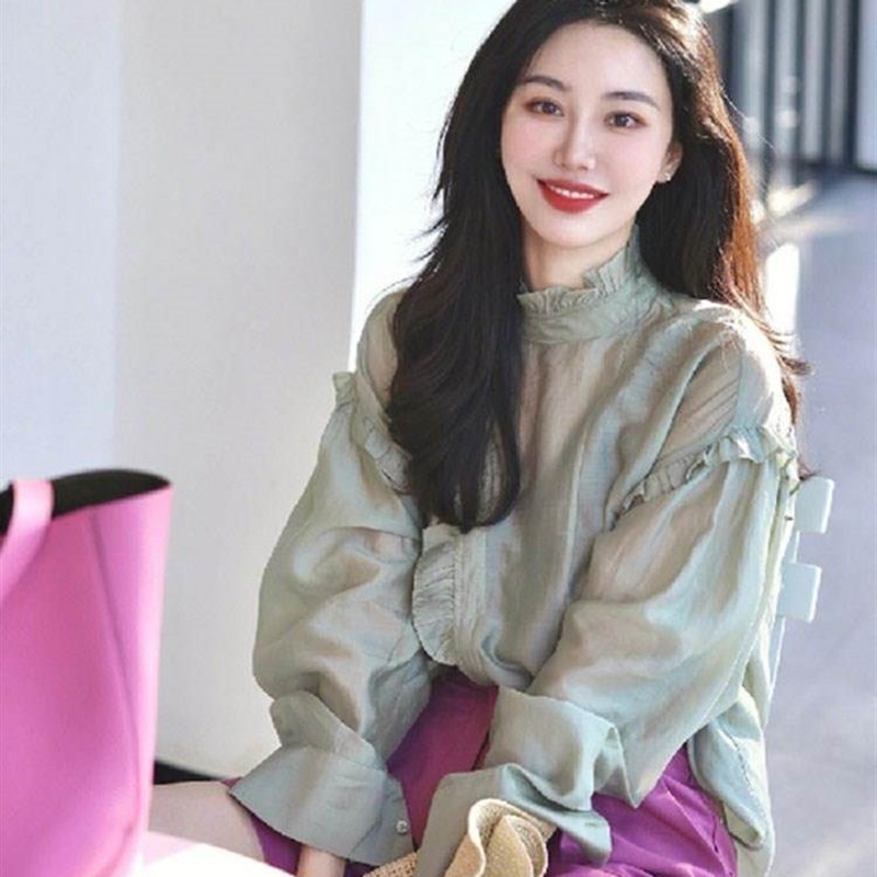 邁締諾獨特別致絕美m小上衣收腰高級感漂亮洋氣減齡小衫法式綠色