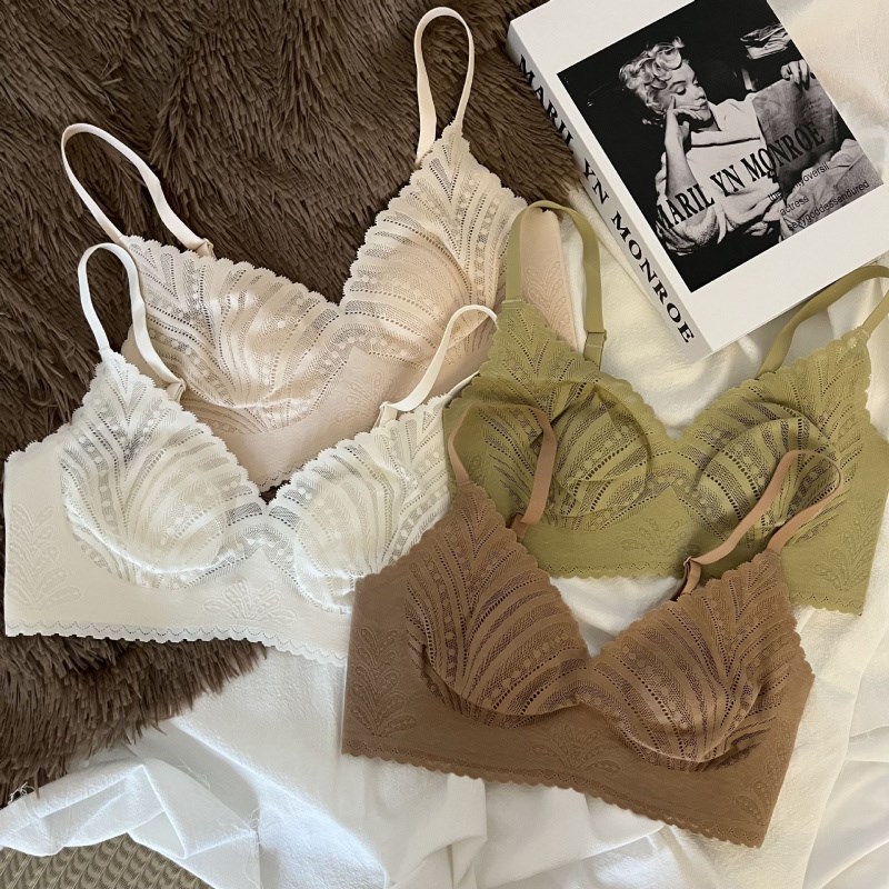 2024款新e款調整型乳膠文胸手掌型無鋼圈蕾絲內衣女小胸聚攏透氣