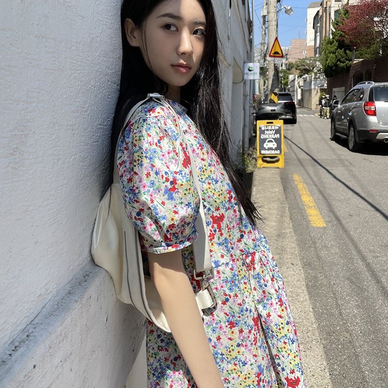 2024年夏季新款女裝茶歇初戀可鹽可甜H泡泡袖小清新碎花連衣裙子
