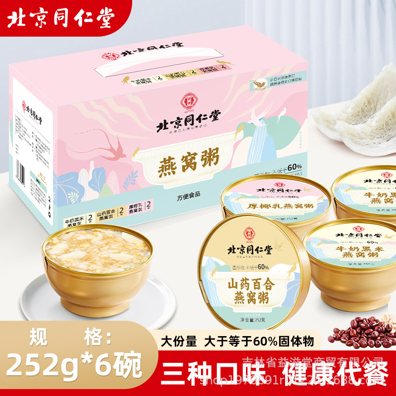 北京同仁堂燕窩粥厚椰乳牛奶黑米山藥百合正真材實料送禮代發