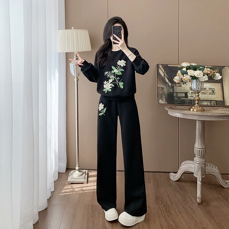 2025春秋季新款國風刺繡運動休閑套裝女氣質P寬松顯瘦長袖兩件套