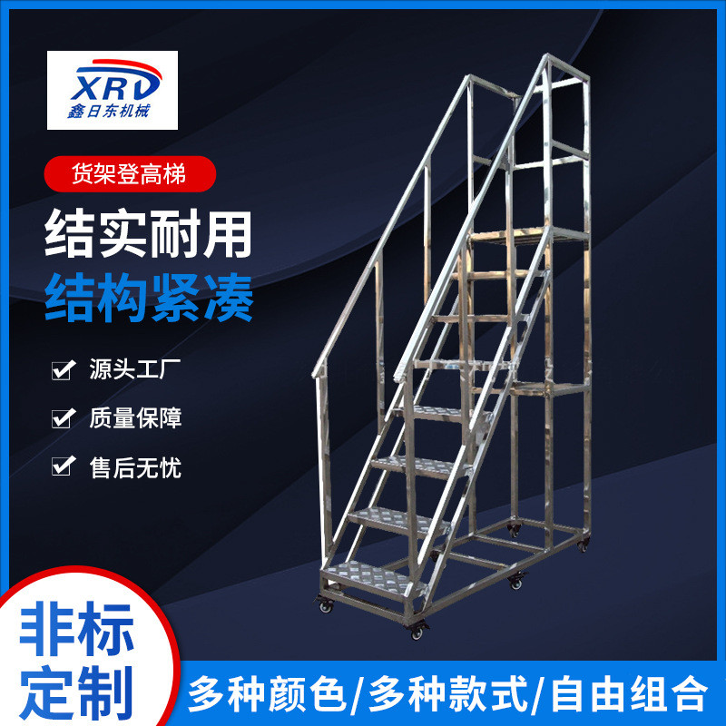 深圳倉庫登高梯安全防護取貨爬梯物流作業車金屬平臺梯子登高車
