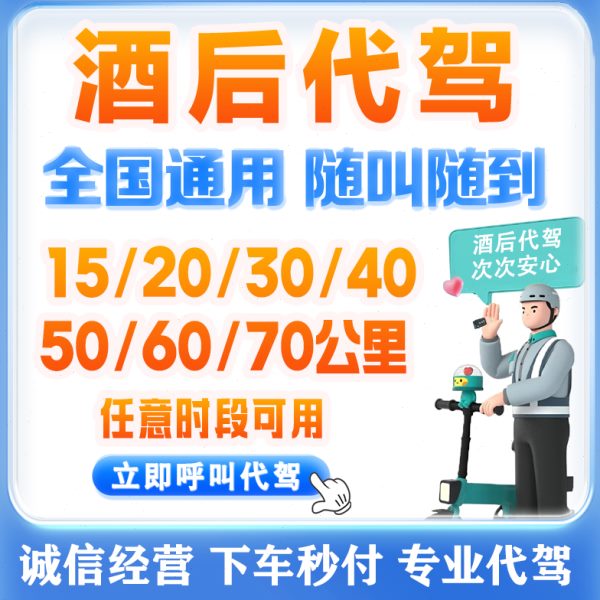 酒后代駕優惠券15 20 30 40 50 60公里代駕券全國通用e代駕代下單