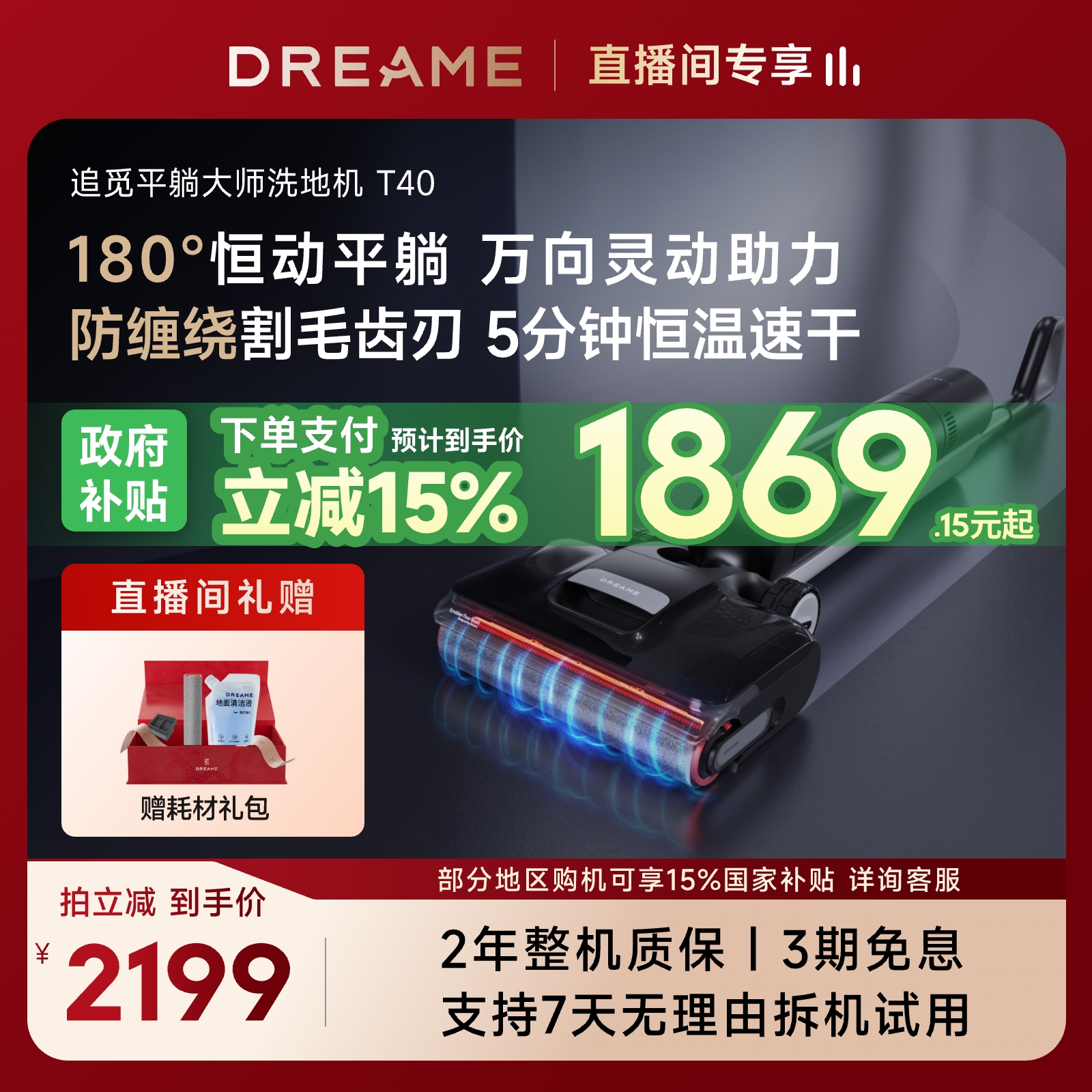 【達播專享】追覓母嬰級助力洗地機躺平0纏毛除菌吸拖洗T40系列