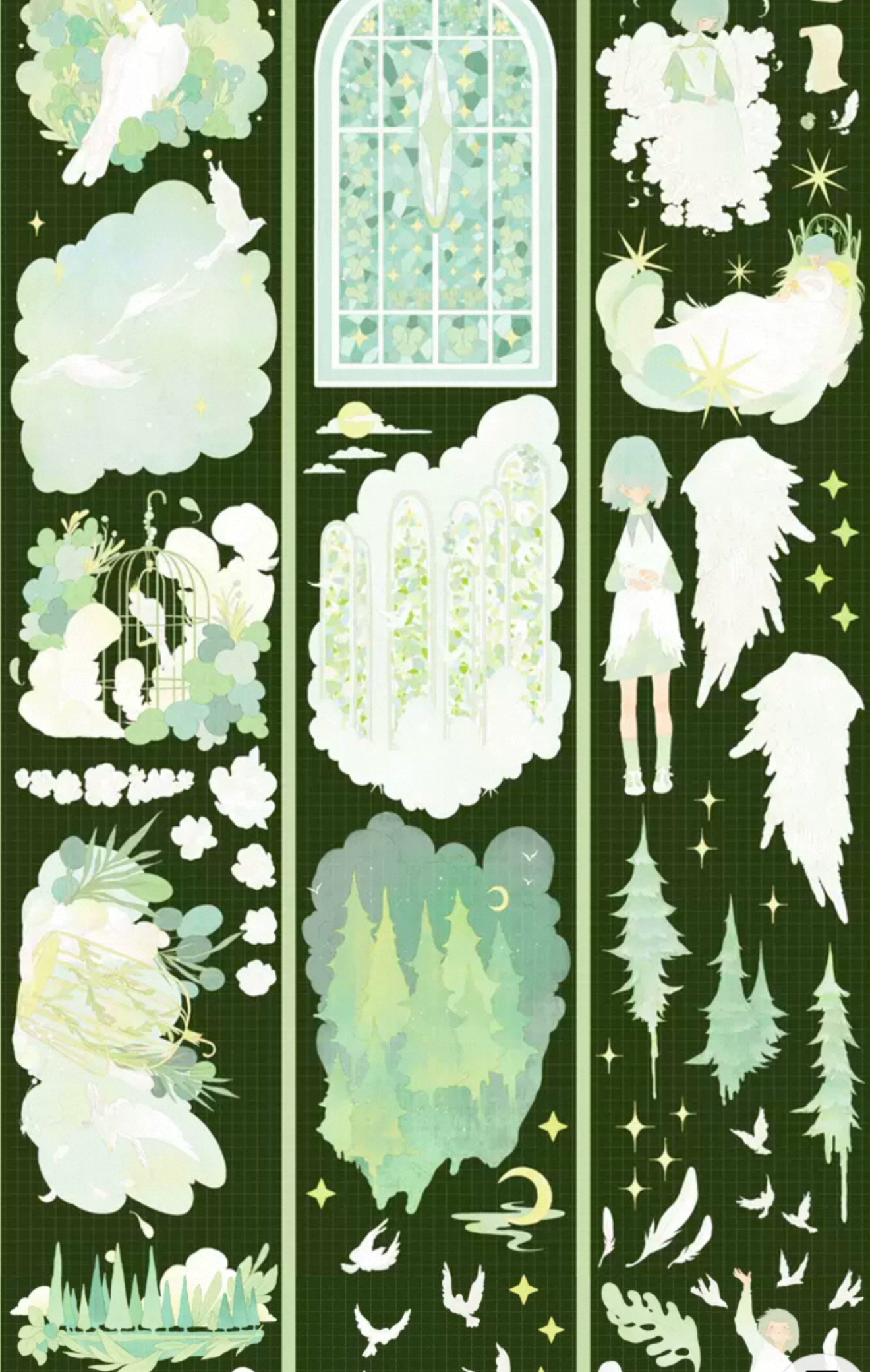 moodtape.日暮春山綠人物精靈原創手帳膠帶咕卡貼紙和紙膠帶文具
