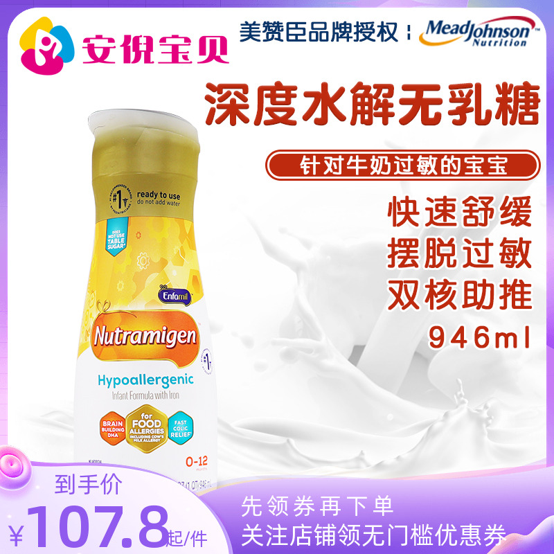 美國美贊臣寶寶1段無乳糖深度水解蛋白水奶液體奶946ml*6瓶水奶