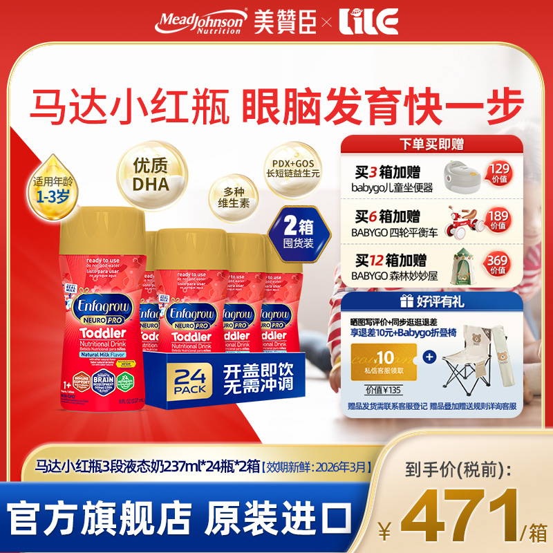美版美贊臣水奶含DHA益生元嬰幼兒液態奶3段237ml*24瓶*2箱
