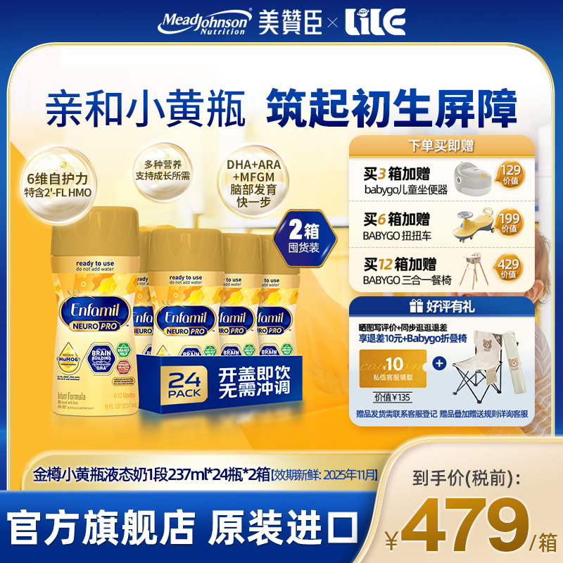 美版美贊臣金樽HuMO6水奶含DHA嬰幼兒寶寶液態奶237ml*24瓶*2箱