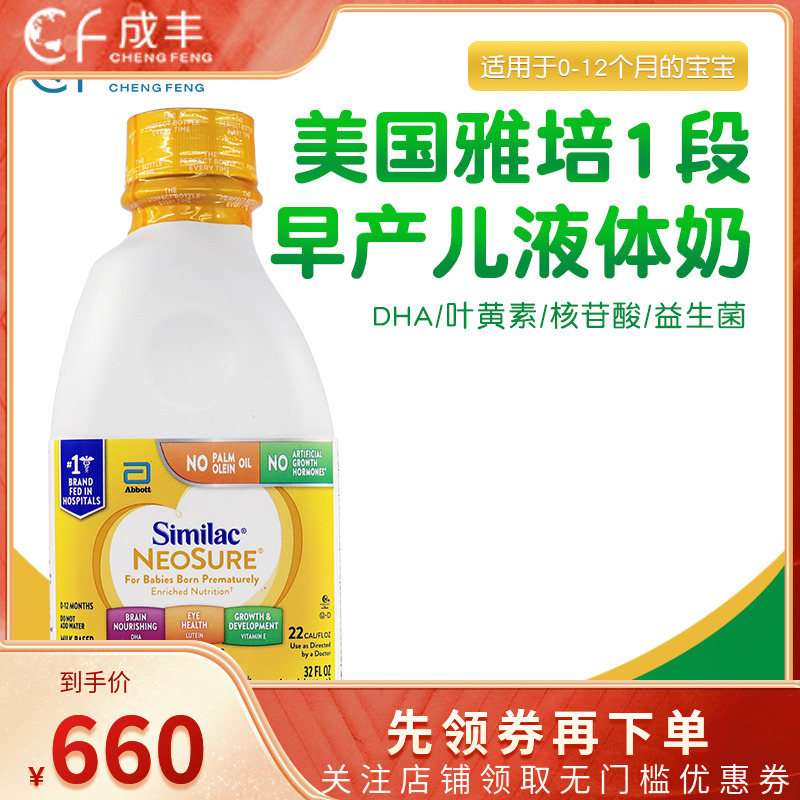 美國雅培similac早產兒低體重兒NEOSURE嬰兒1段液態奶946ml*6瓶