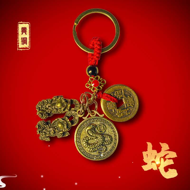 公母貔貅掛件黃銅五帝錢十二生肖鑰匙扣掛件復古風寓意好屬相生肖
