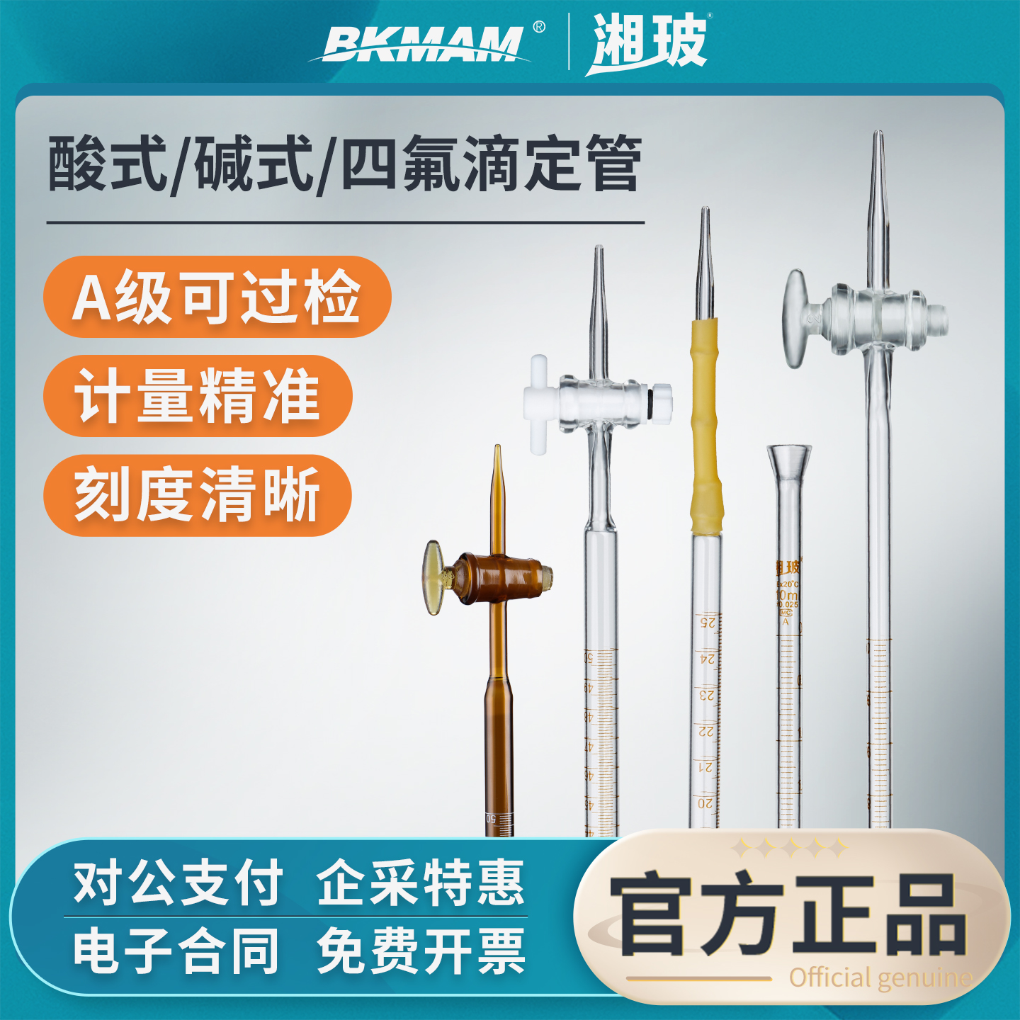 湘玻玻璃滴定管實驗室酸堿式聚四氟滴定管T款100ml棕色透明量器