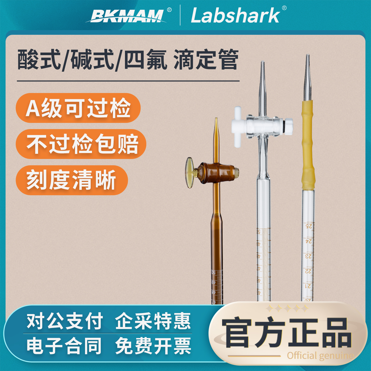 Labshark玻璃酸式堿性滴定管聚四氟滴定管通用微量白棕色A級過檢