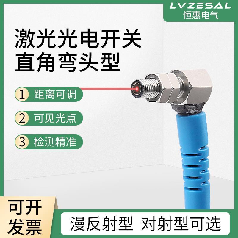 恒惠微小型直角彎頭激光傳感器M4M6漫反射對射型光電開關可見光斑