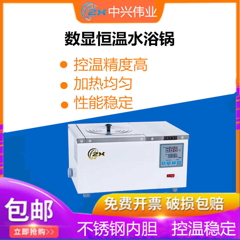 中興水浴鍋數顯DZKW-4單孔水浴加熱電熱恒溫水浴鍋智能不銹鋼控溫