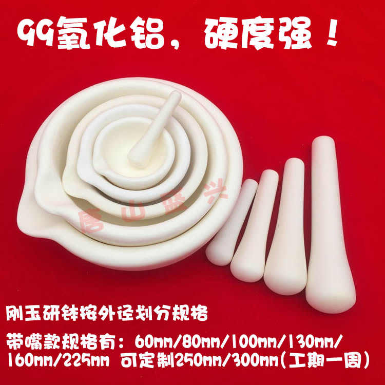 興易牌 99氧化鋁研磨缽 160mm 帶嘴款 剛玉研缽 剛玉乳缽