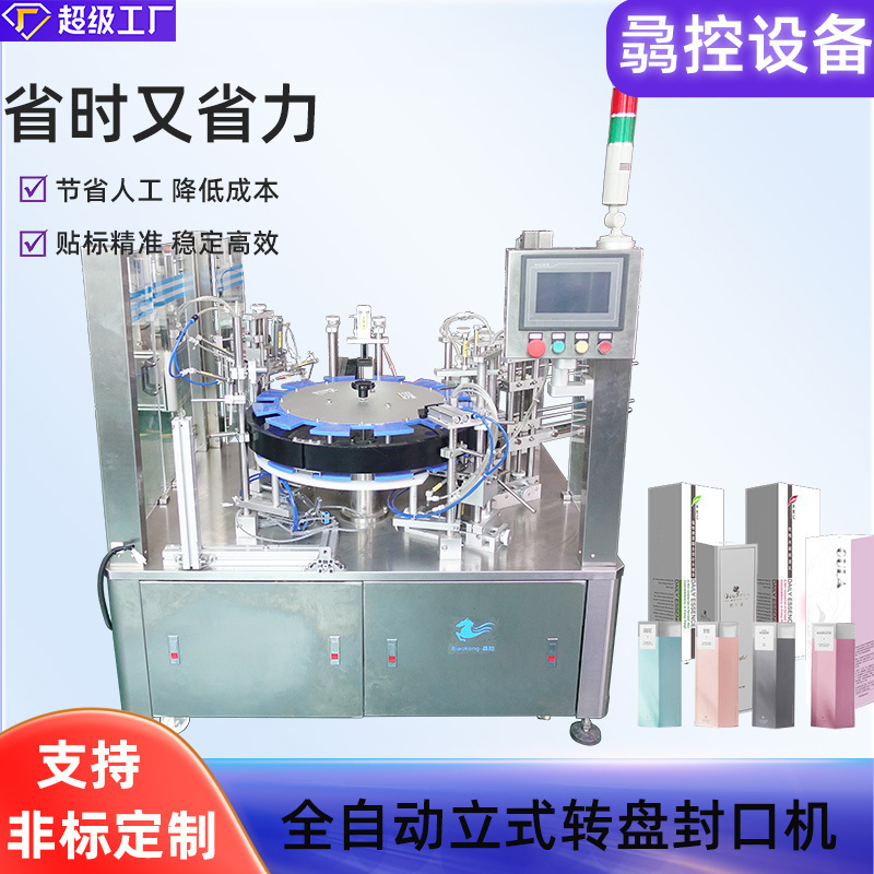 廠家定制自動上料折蓋轉盤包裝機化妝品涂膠.噴膠裝盒機